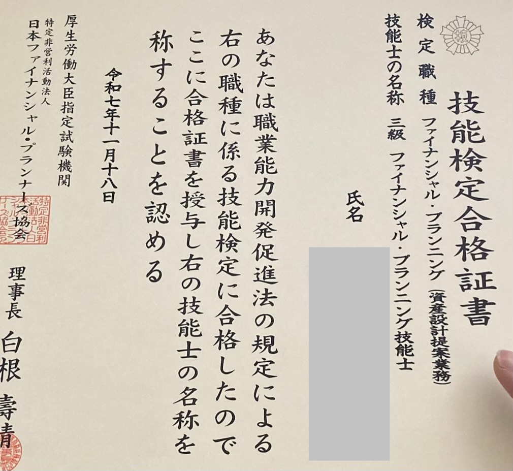 | 保有資格 | 3級ファイナンシャル・プランニング技能士(FP3級) |