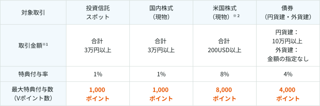 ・対象取引への積立金額に対し1~8%のVポイント還元(最大:14,000pt)