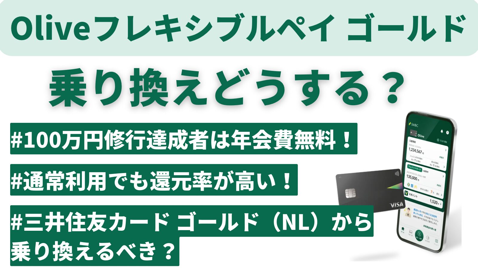 ここまで見てきたとおり、Oliveフレキシブルペイ ゴールドは「年会費無料×高還元×一体型管理」という、非常にバランスの良いゴールドカードです。