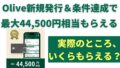 Oliveは新規発行&条件達成で最大44,500円相当をプレゼントするキャンペーンを実施中です。
