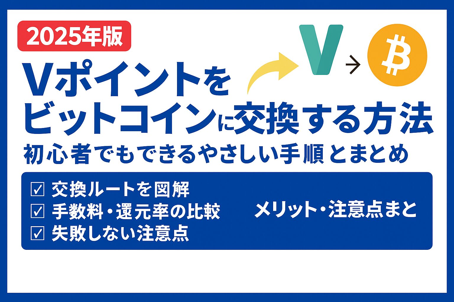 この記事では、Vポイントをビットコインに交換する方法を中心に、メリット・デメリット、損得比較、初心者でも安心して始められるステップまで詳しくご紹介しました。